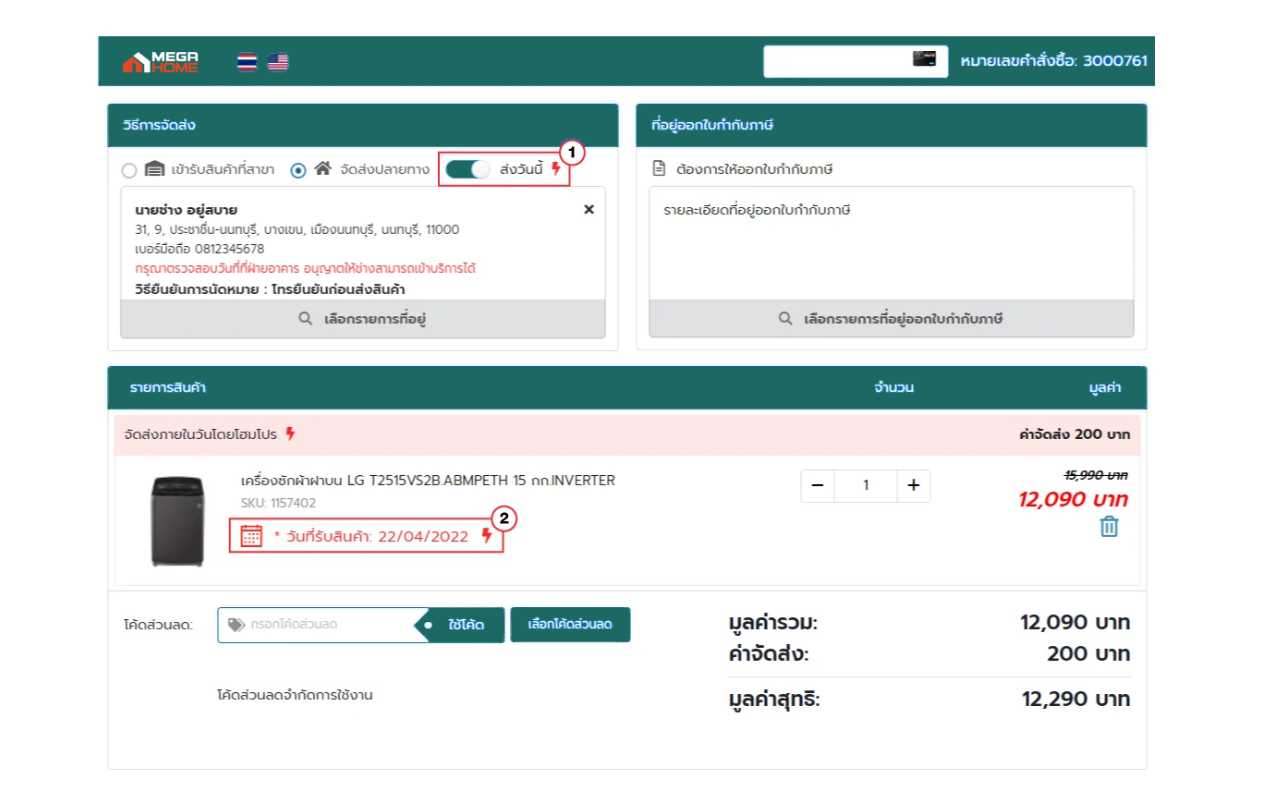 | เงื่อนไขการสั่งซื้อ | สั่งสินค้าและชำระเงินภายในวัน ก่อน 15:30 น. | สั่งสินค้าและชำระเงินภายในวัน หลัง 16.00 น. |